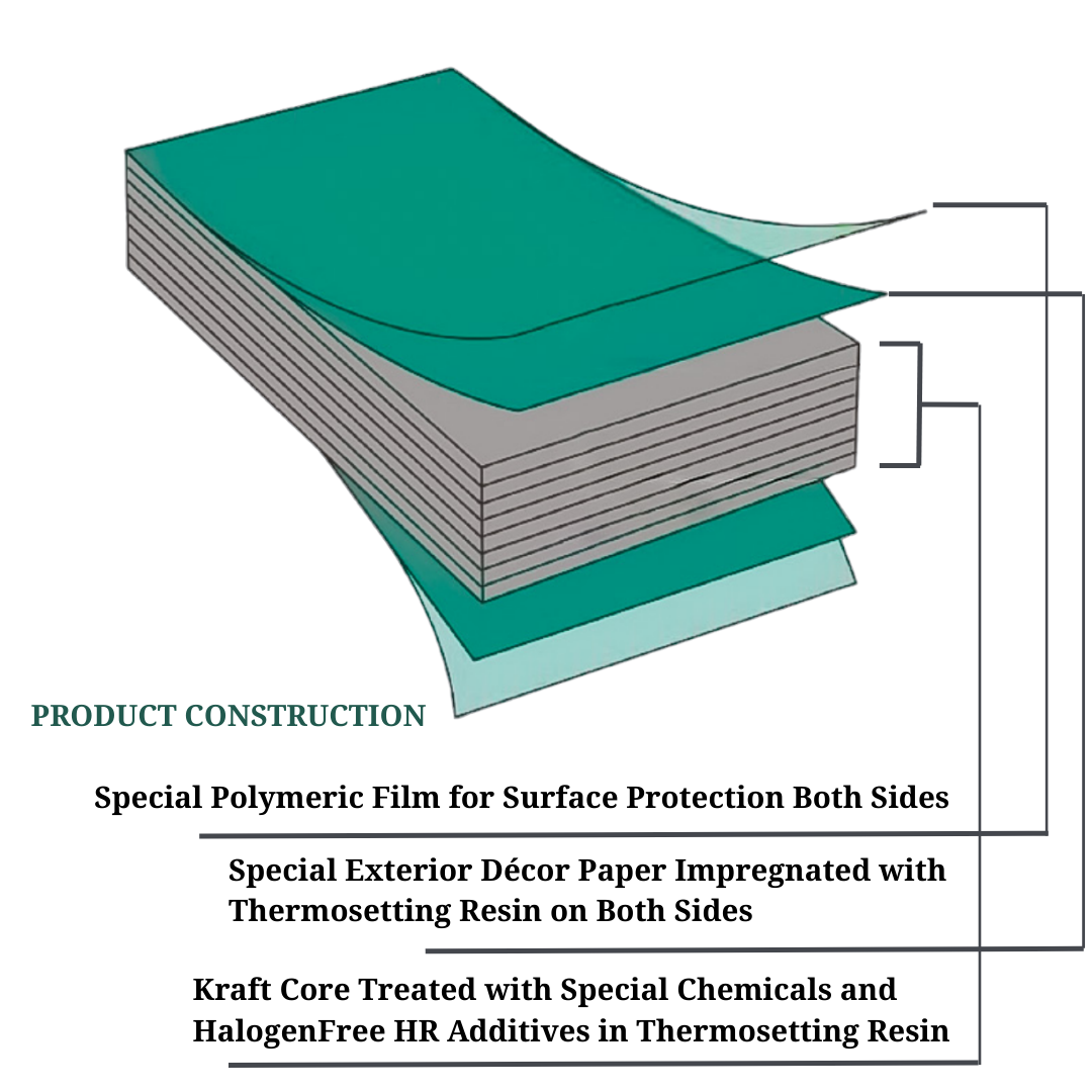 1. Layers of kraft paper impregnated with halogen free FR-Grade phenolic resins that make the product fire-retardant.