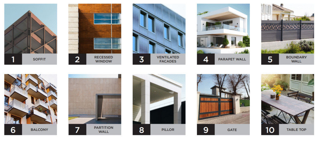 2. Both the sides have a special exterior-grade decorative paper surface mode using extreme light stable pigments, special chemicals, and inks that are then impregnated with melamine resins. The decor paper is rated 3-5 an Grey Scale, hence making it fit to use for exteriors.